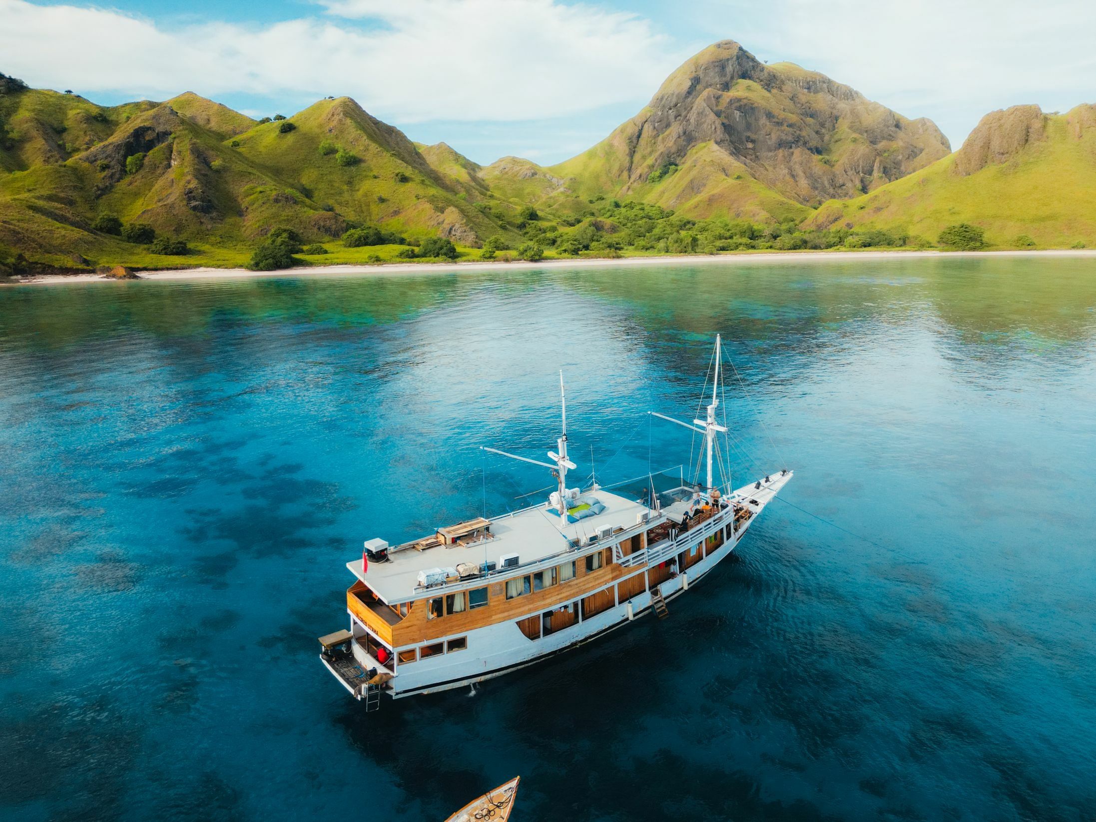 El barco Custom Built 85 | Flores Utama solo se puede alquilar con un patrón profesional.