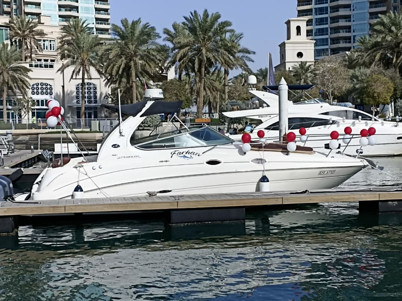 Esta lancha a motor Sea Ray 280 - Farhan 2011 es adecuada para 10 personas. Está atracada en Dubai Marina, Emiratos Árabes Unidos.