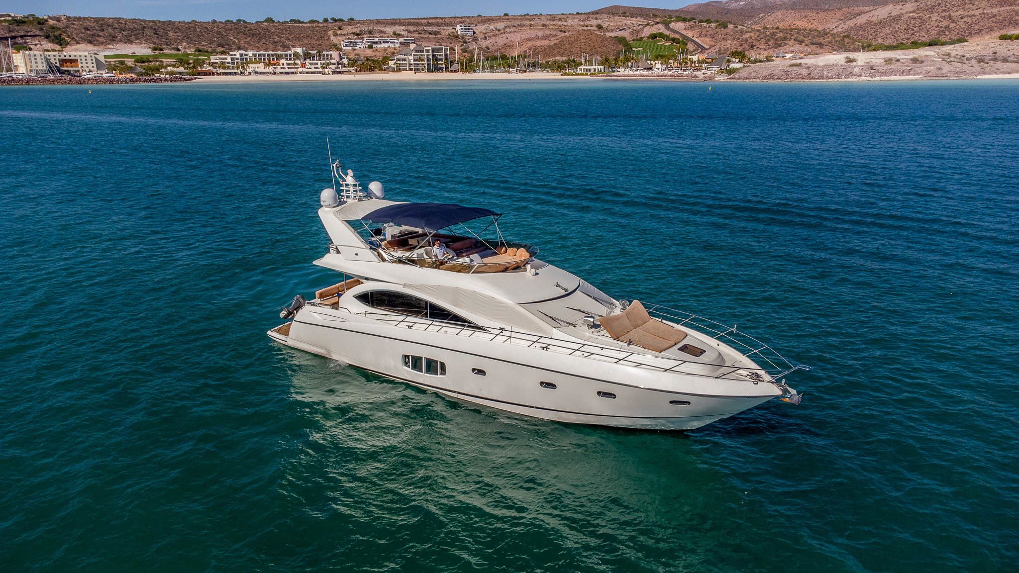 El yate a motor de 4 cabinas Sunseeker 75 - Bar&Co fue construido en 2012 y se encuentra anclado en Costa Baja Marina, México.