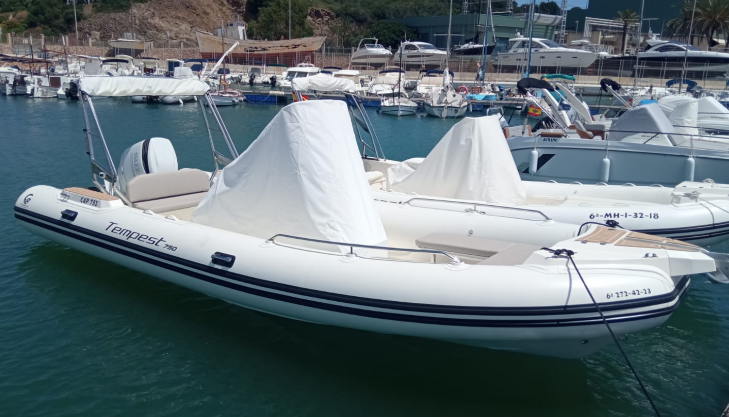 See 2022 Capelli Tempest 700 - Cap 703 mootorpaat on sobilik kuni 10 inimesele. See on dokitud asukohas Marina Menorca, Hispaania.
