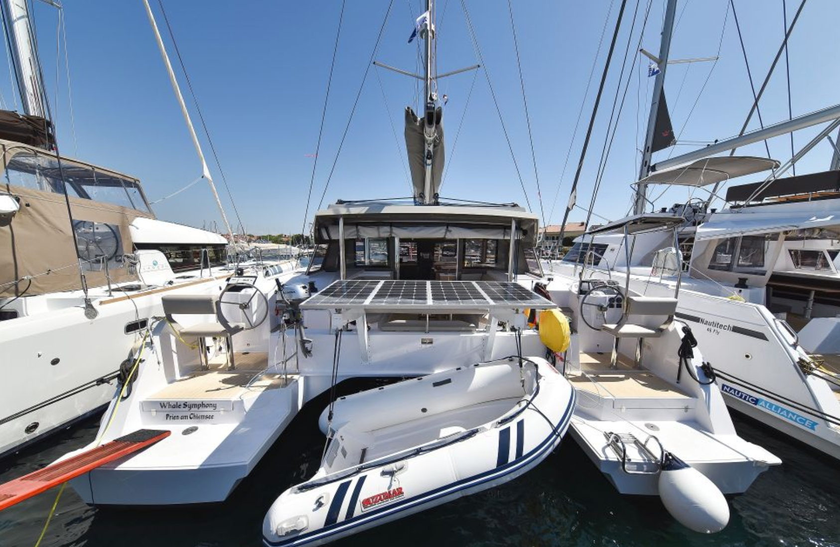 6 kajutiga katamaraan Nautitech Open 40 - Whale Symphony ehitati aastal 2018 . See on dokitud asukohas Marina Tribunj, Horvaatia.