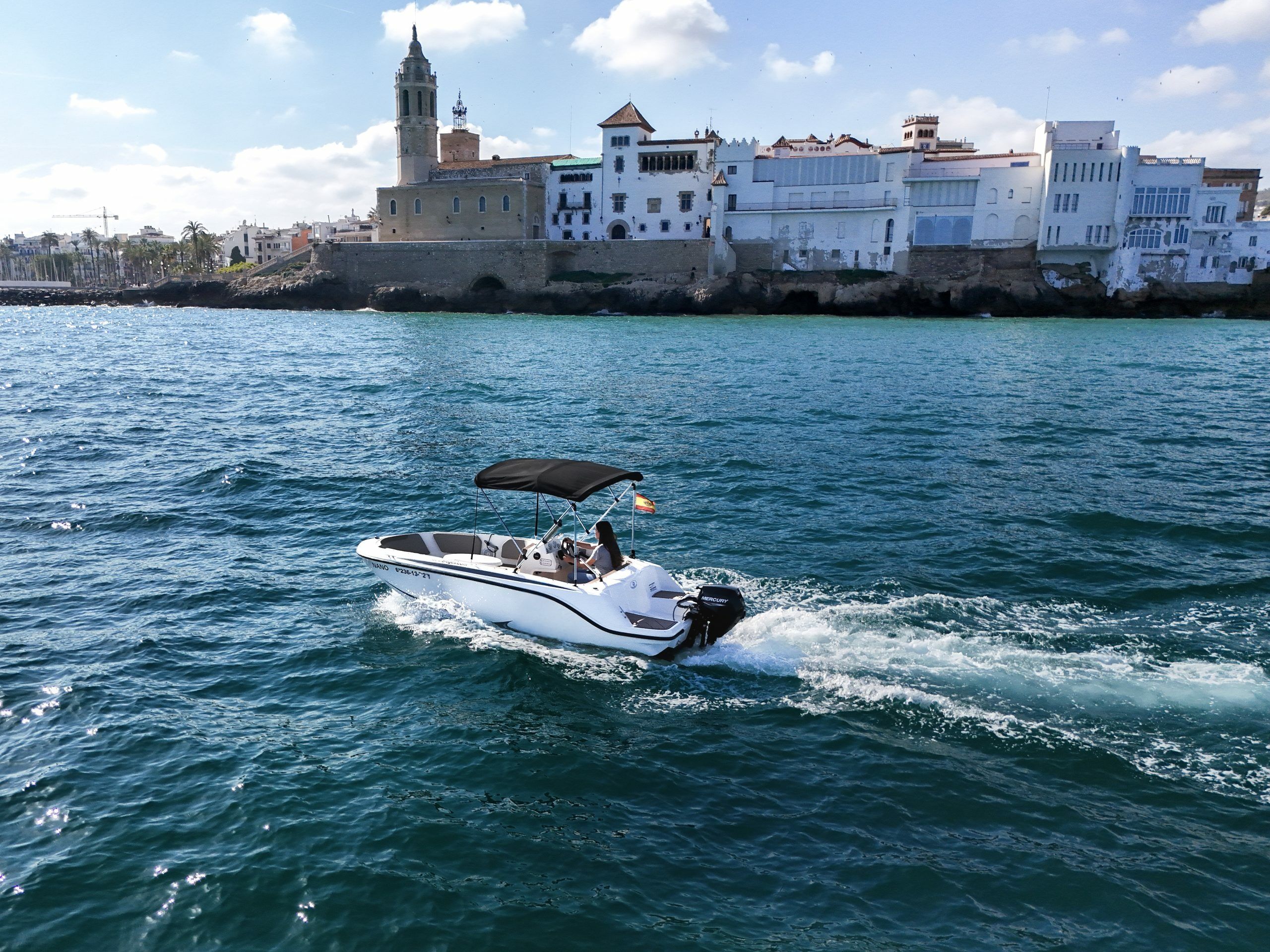 See 2023 Quicksilver 475 aXess - Nano mootorpaat on sobilik kuni 5 inimesele. See on dokitud asukohas Port de Sitges - Aiguadolç, Hispaania.
