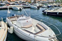 Le bateau à moteur Capelli Tempest 626 - Zeus (2007) peut accueillir 8 passagers et est amarré à Port de Saint-Florent, France.