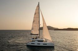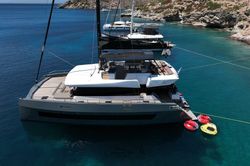 Le catamaran Moon 60 - Honeymoon composé de 4 cabines fut construit en 2025 et est amarré à la marina Lavrion Marina, Grèce.