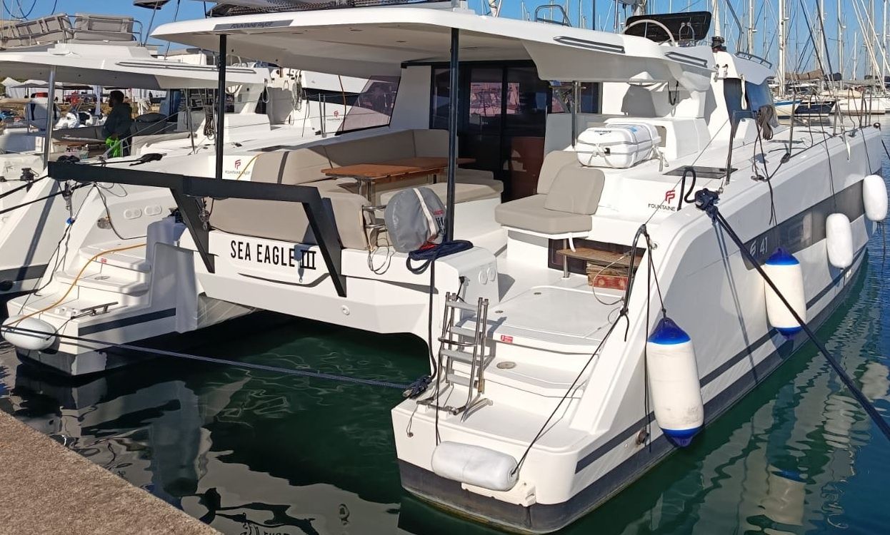 Το 4-καμπινών καταμαράν Excess 14 - Mati ναυπηγήθηκε το 2024 και βρίσκεται αγκυροβολημένο στο Marina di Rodi Garganico, στην Ιταλία.