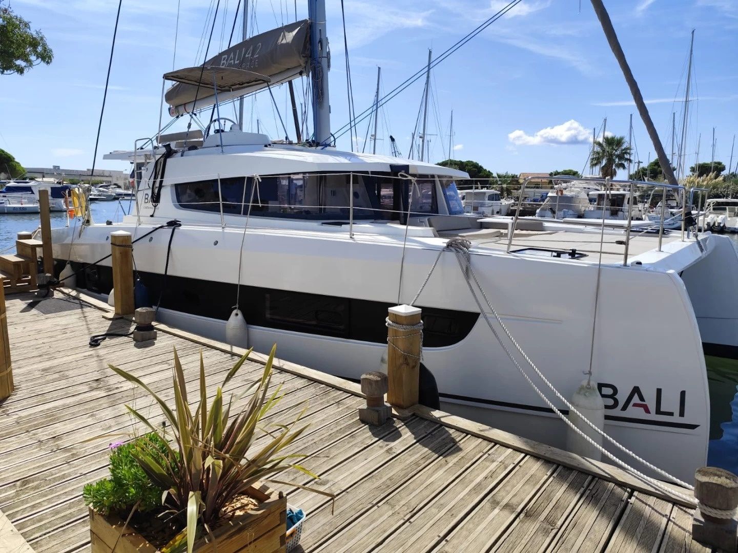 Το 5-καμπινών καταμαράν Leopard 45 - Tibouren ναυπηγήθηκε το 2022 και βρίσκεται αγκυροβολημένο στο Port de Toulon Vieille Darse, στην Γαλλία.