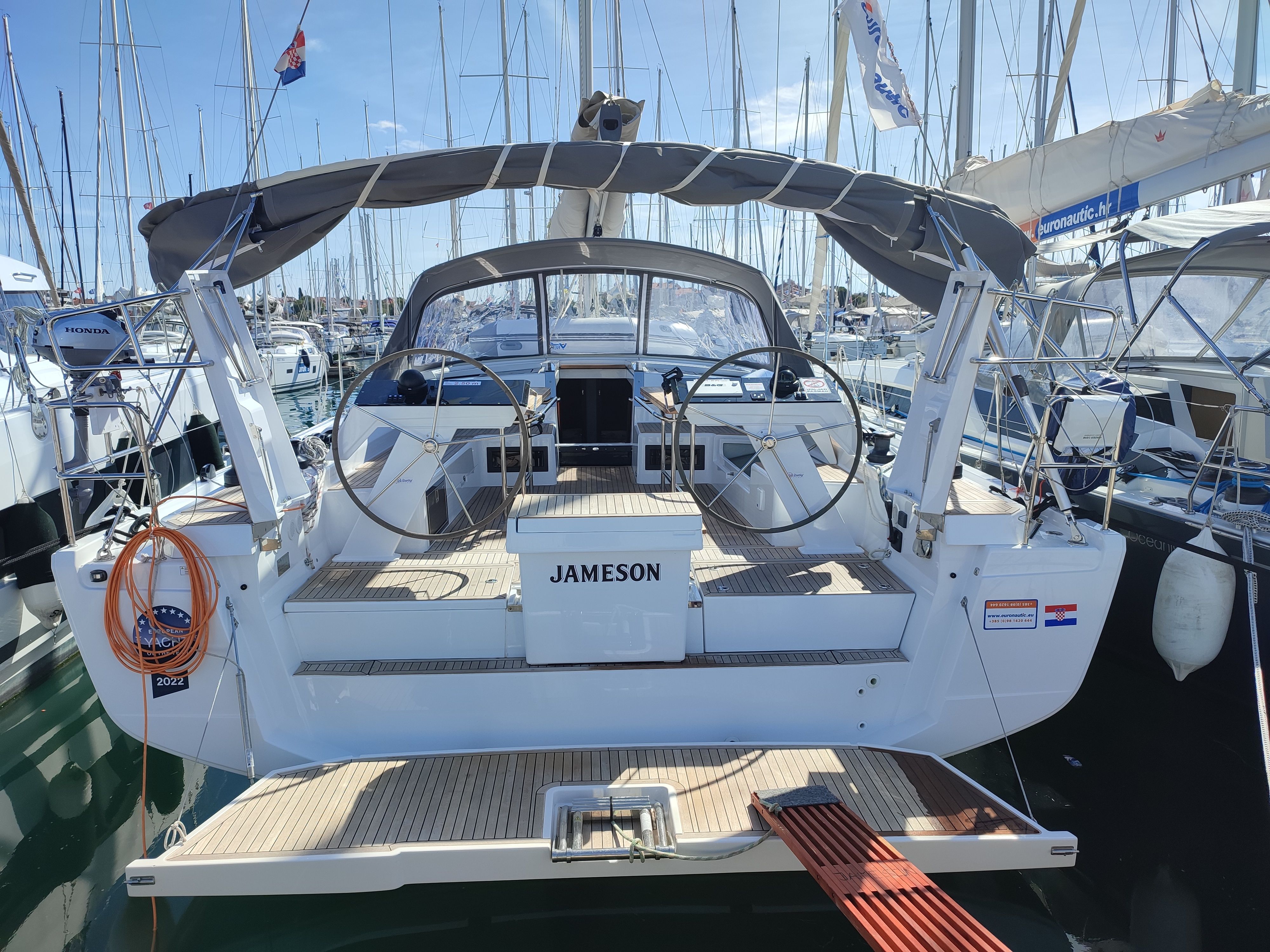 Hanse 460 - Jameson jedrilica sa 5 kabina izgrađena je 2022. godine. Usidrena je u Marina Kornati, Hrvatska.