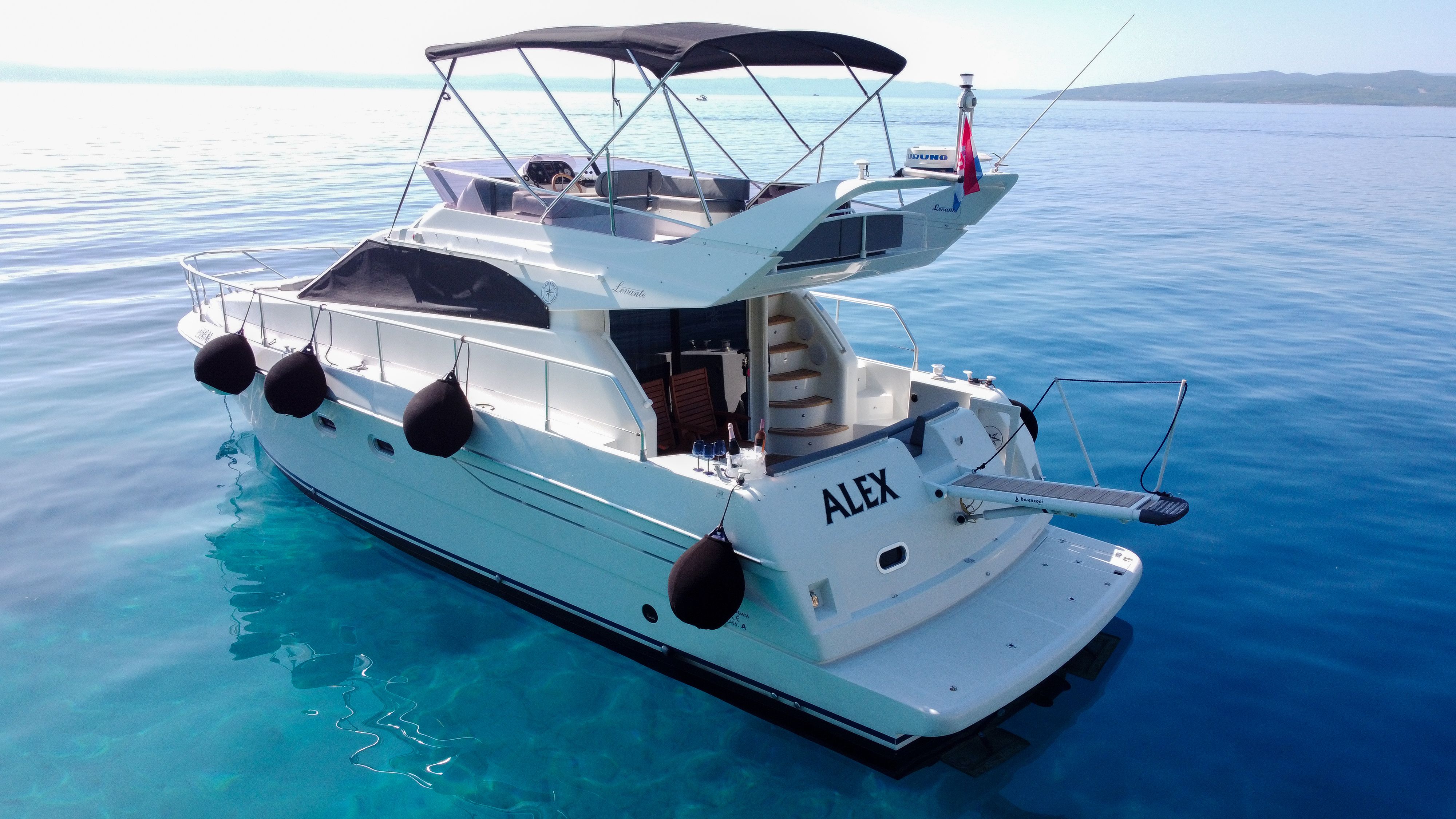 A hajó Levante 43 Fly | Alex csak kapitánnyal lehet bérelni.
