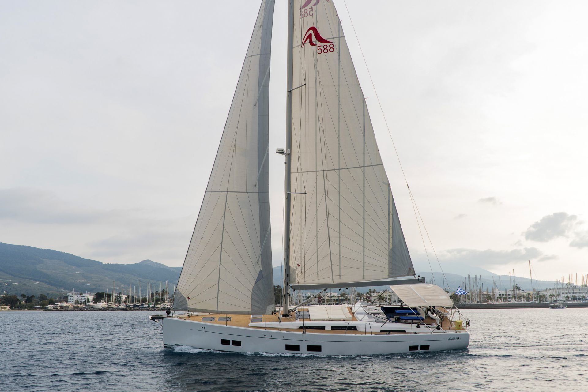 La barca a vela Hanse 588 - Amadea da 3 cabine è stata costruita nel 2020 ed è ormeggiata a Marina Kos, Grecia.