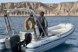 Questa barca a motore Olympic 490 - Elpida del 2012 è adatta per 4 persone. È ormeggiata a Vlyhada Μarina, Grecia.