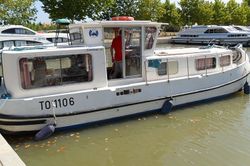 La casa galleggiante Triton 1050 Les Canalous 99 è stata costruita nel 1999 è ormeggiata nella marina Luzech Base, Francia.