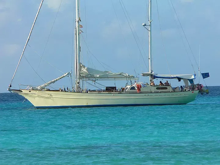 5 kajīšu Buru jahtā German Frers 72 - La Peregrina tika uzbūvēta 1984 gadā un tā, 2025 gadā renovēta, atrodas Nanny Cay Resort & Marina piestātnē Karību reģions.