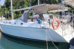 3 kajīšu Buru jahtā Jeanneau Sun Odyssey 409 - Malee tika uzbūvēta 2012 gadā un tā atrodas Siam Royal View Pier piestātnē Taizeme.