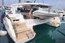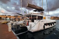 De catamaran Bali 4.2 - Idra met 5 kajuiten is gebouwd in 2023 en ligt aangemeerd in Capo d’Orlando marina, Italië.