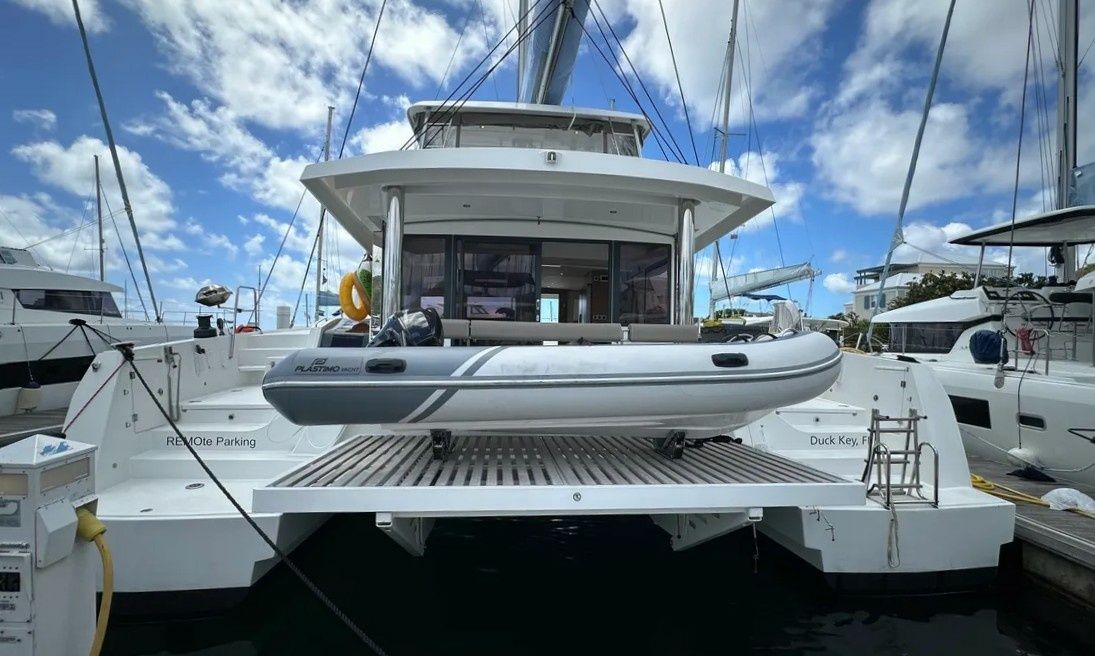 De catamaran Bali 5.4 - First Class met 8 kajuiten is gebouwd in 2023 en ligt aangemeerd in Hodge's Creek Marina, Caribisch Gebied.
