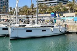 Het zeiljacht Beneteau Oceanis 38.1 - Freedom met 3 kajuiten is gebouwd in 2019 (gerenoveerd in 2024) en ligt aangemeerd in Port Olimpic, Spanje.