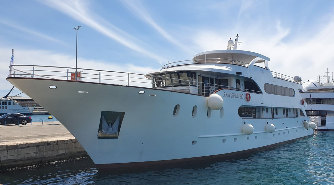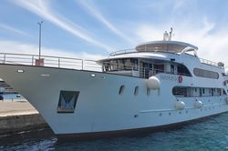 Het motorjacht Custom Built 122 - Amalia met 18 kajuiten is gebouwd in 2013 en ligt aangemeerd in Krilo Jesenice, Kroatië.