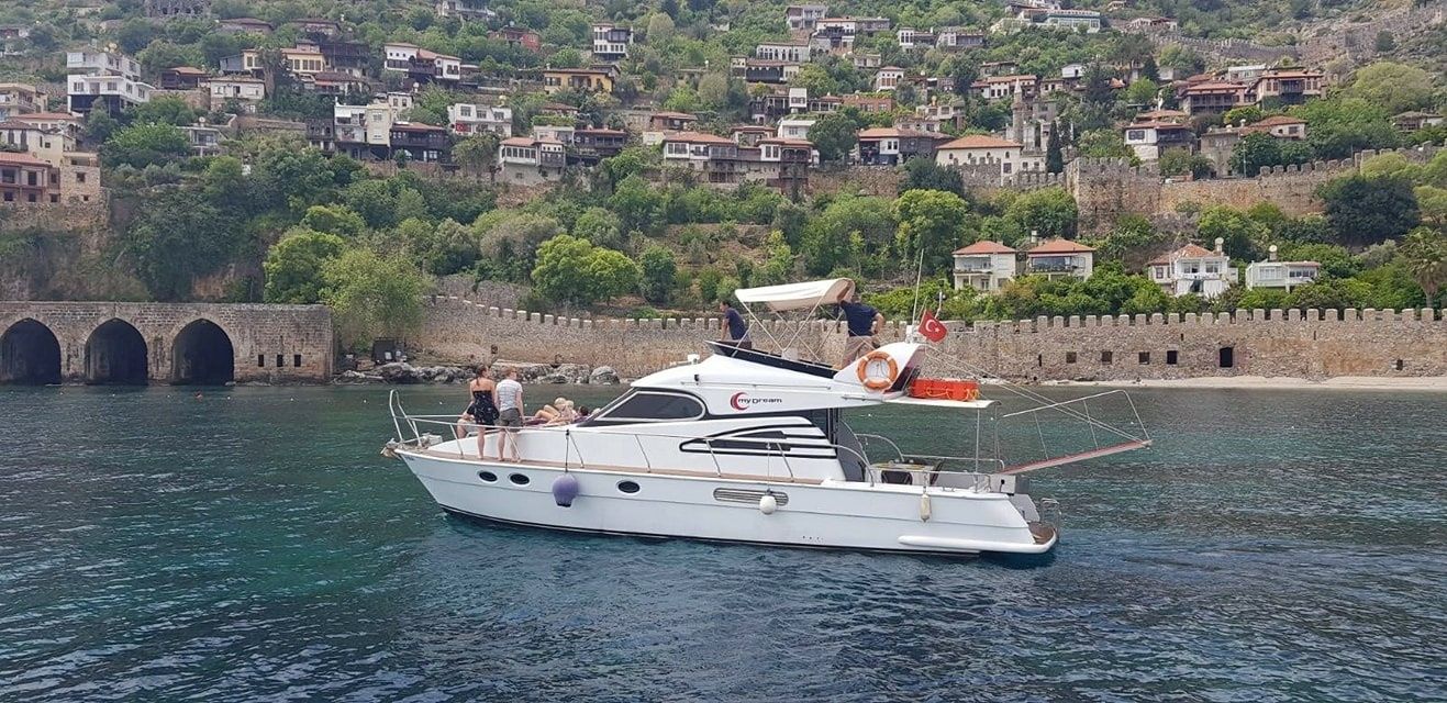 Het motorjacht Custom Built 43 - My Dream met 2 kajuiten is gebouwd in 2001 (gerenoveerd in 2017) en ligt aangemeerd in Alanya Kaleici, Turkije.