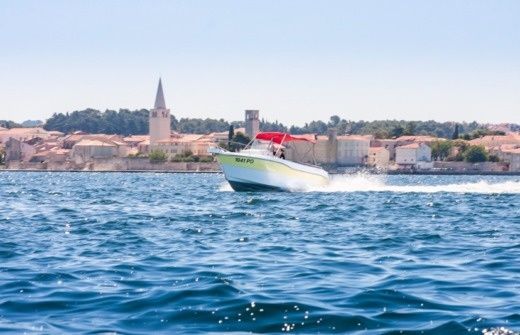 Deze 2008 Custom Built 740 - Orka motorboot is geschikt voor 12 personen. Het ligt aangemeerd in Marina Vrsar town pier, Kroatië.
