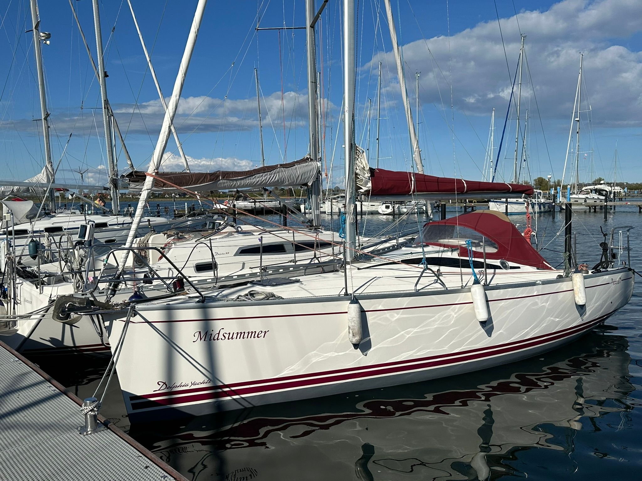 Het zeiljacht Delphia 28 - Midsummer met 1 kajuit is gebouwd in 2008 en ligt aangemeerd in Yachthafen Burgtiefe, Duitsland.