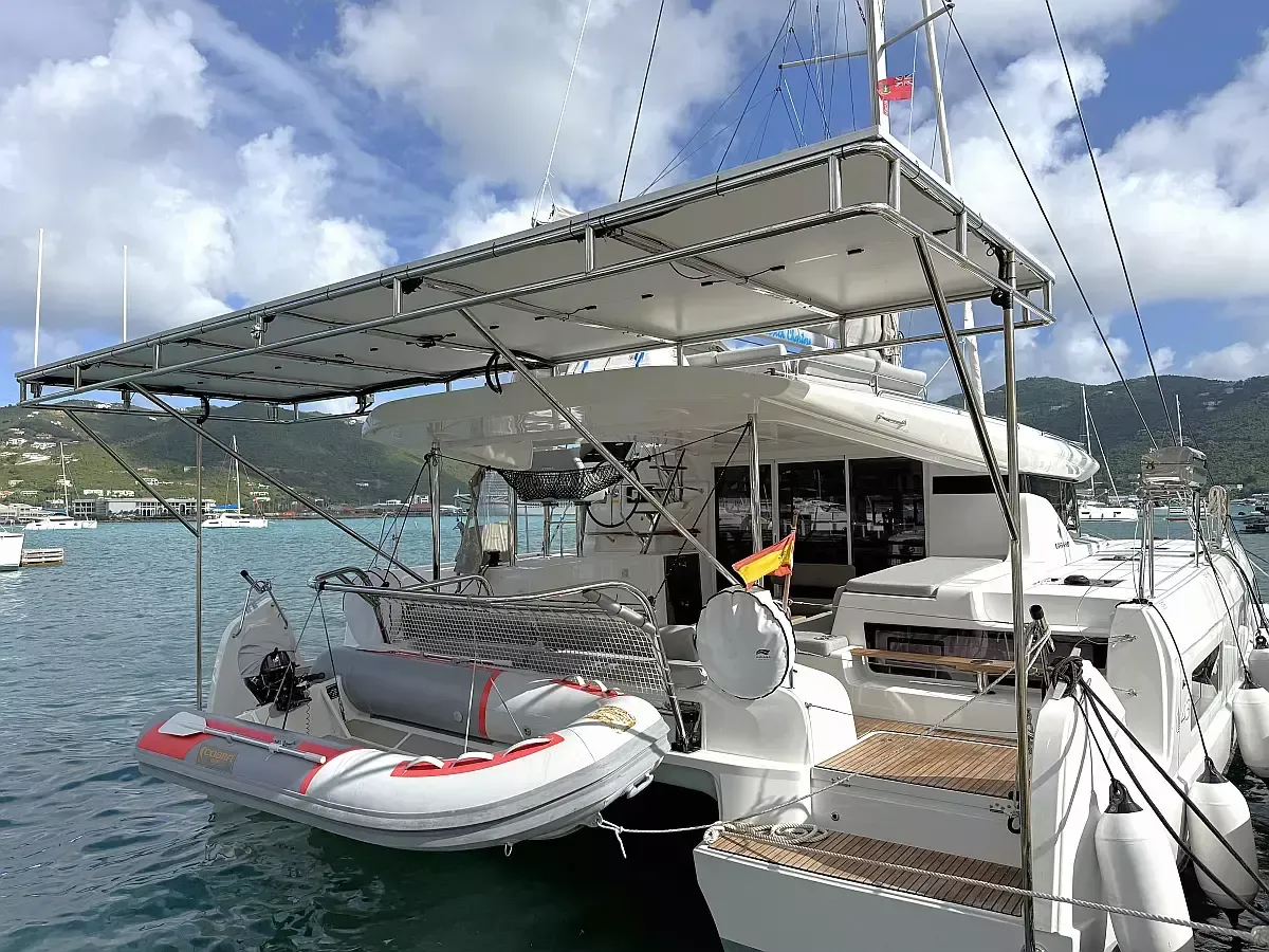 De Lagoon beschikt over klassiek grootzeil, generator, bimini en buiten GPS-plotter. Daarnaast heeft het ook verwarming, airco en flybridge. De volledig ingerichte keuken heeft een koffiemachine, koelkast, oven, kookplaat en wastafel.