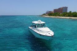 Het motorjacht Sea Ray Sundancer 40 - Blue Ray met 2 kajuiten is gebouwd in 2006 en ligt aangemeerd in Marina Puerto Aventuras, Mexico.