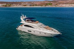Het motorjacht Sunseeker 73 - Astur met 4 kajuiten is gebouwd in 2015 en ligt aangemeerd in Marina Palmira, Mexico.