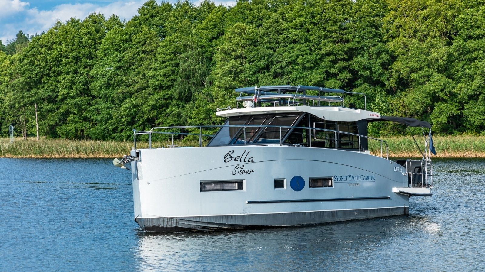 Husbåten Cobra Yachts 36 Bella Silver ble bygd i 2017 og ligger til kai i marinaen Sunport Ekomarina, Polen.
