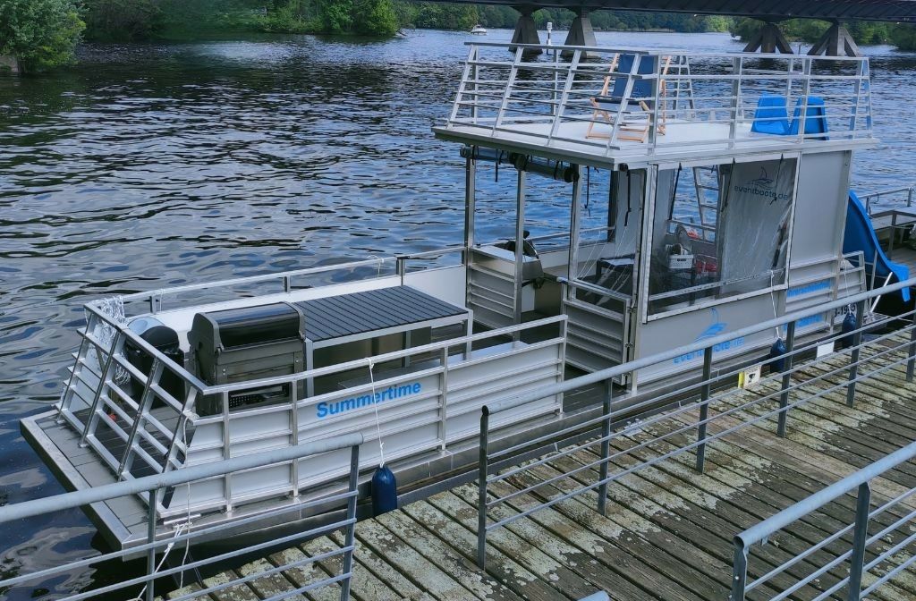 Husbåten Custom Built 28 Summertime ble bygd i 2024 og ligger til kai i marinaen Berlin Spandau Haselhorst, Tyskland.