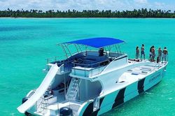 Denne motorkatamaran drives i Den dominikanske republikk etter charter Kimbara Travel.