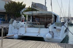 Denne katamaran drives i Hellas etter charter Thrace Yachting.