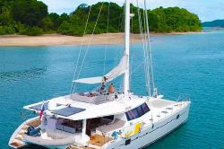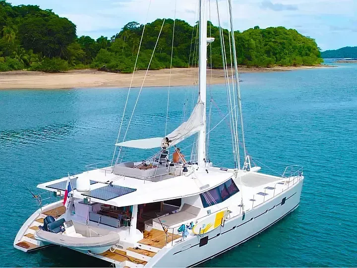 Denne katamaran drives i Panama etter charter San Blas Sailing.