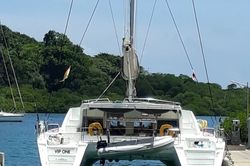 Denne katamaran drives i Panama etter charter Sailing Guji.