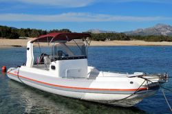 Motorbåten 2012 Typhoon 10 - Pandorian er egnet for 9 personer. Den ligger til kai i Alyki Port Paros, Hellas.