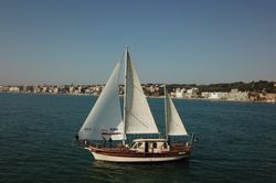 Denne seilbåten drives i seilbåter etter charter Wabi Sabi.