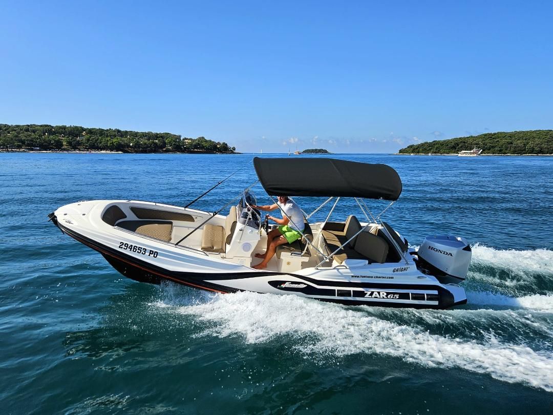 Motorbåten 2017 Zar 65 - 17 er egnet for 9 personer. Den ligger til kai i Marina Funtana, Kroatia.