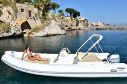 Ta łódź motorowa 2025 Altamarea 20 - 25-3 nadaje się dla 8 osób. Jest zacumowana w Porto Arenella, Włochy.