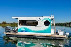 Ta łódź motorowa 2020 Aqualine 550 - Poseidon nadaje się dla 5 osób. Jest zacumowana w Campingpark Sanssouci, Niemcy.