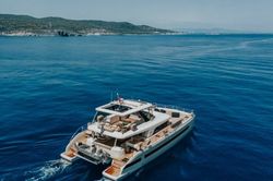 Ten jacht wyposażony jest w radar, generator prądu, ploter map w salonie, grill oraz ster strumieniowy. Twoją podróż uprzyjemnią skuter wodny, TV z płaskim ekranem, klimatyzacja, system audio oraz odtwarzacz DVD. Pełne wyposażenie kuchni to: kuchenka mikrofalowa, zamrażarka, ekspres do kawy, lodówka oraz piekarnik.