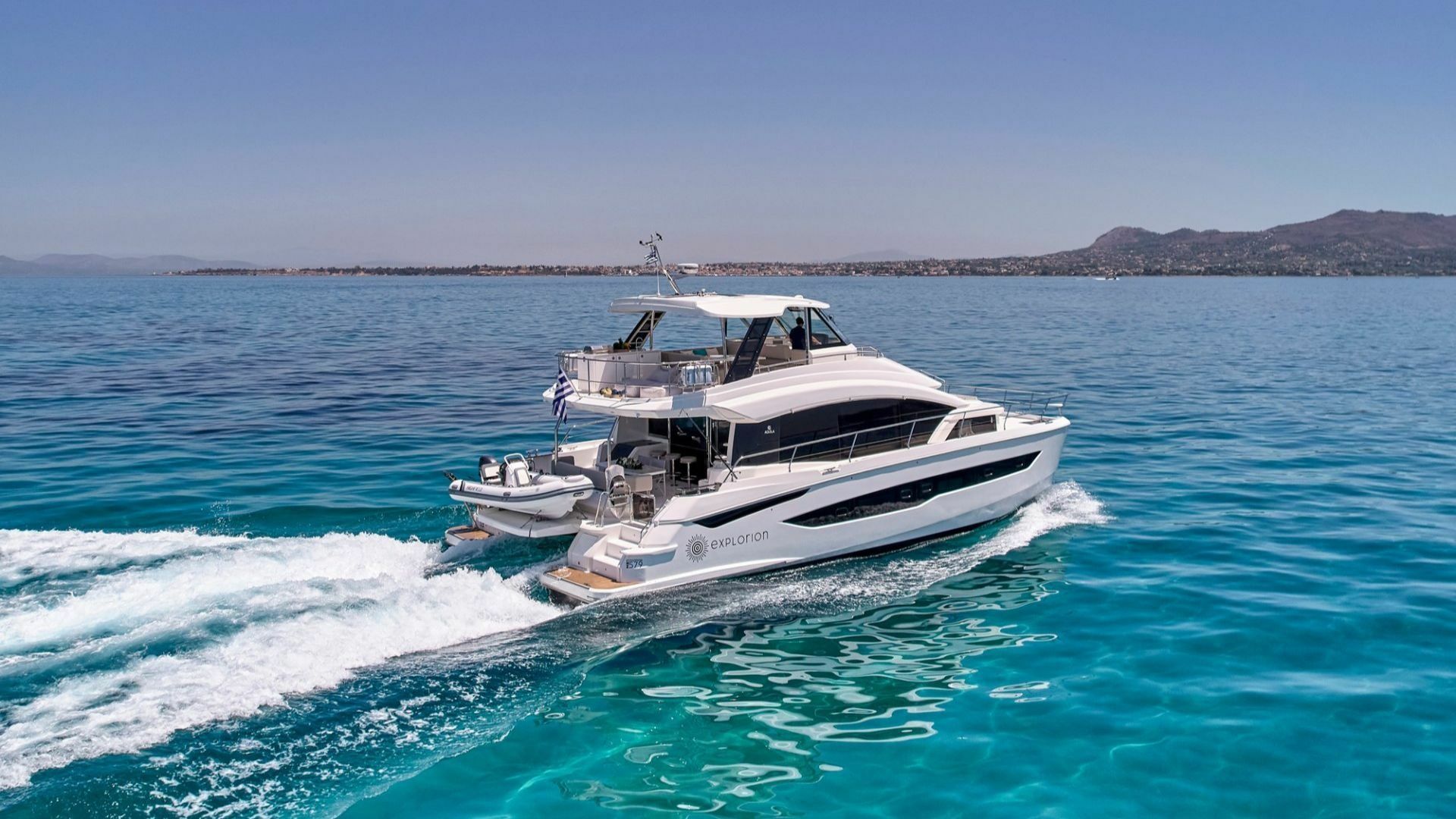 4-cabine catamarã a motor Aquila 54 - Explorion foi construído em 2023 e está ancorado em Athens Marina, Grécia.