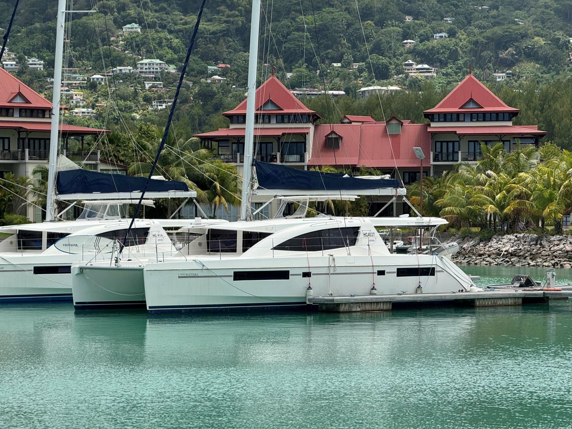 6-cabine catamarã Lagoon 50 - Ocean foi construído em 2019 e está ancorado em Eden Island Marina, Seychelles.
