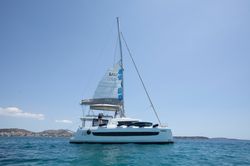 Acest catamaran Bali 4.6 - Keysmet cu 5 cabine a fost construit în 2025 și este andocat în Tourlos Marina Mykonos, Grecia.