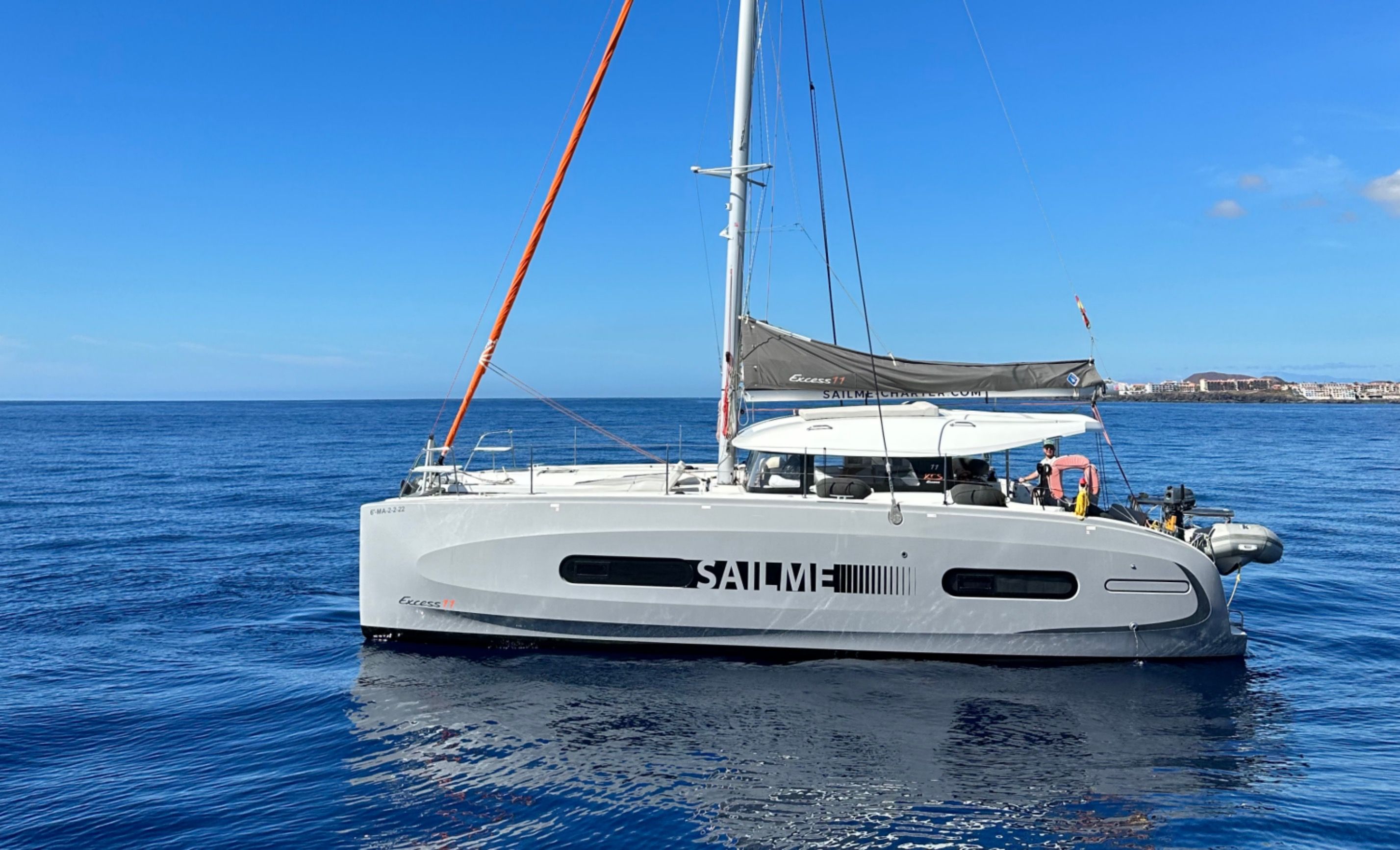Acest catamaran Excess 11 - Saona cu 5 cabine a fost construit în 2022 și este andocat în Marina San Miguel, Spania.