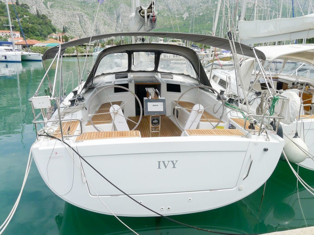 Acest iaht cu vele Hanse 415 - Ivy cu 3 cabine a fost construit în 2015 și este andocat în Marina Kaštela, Croaţia.