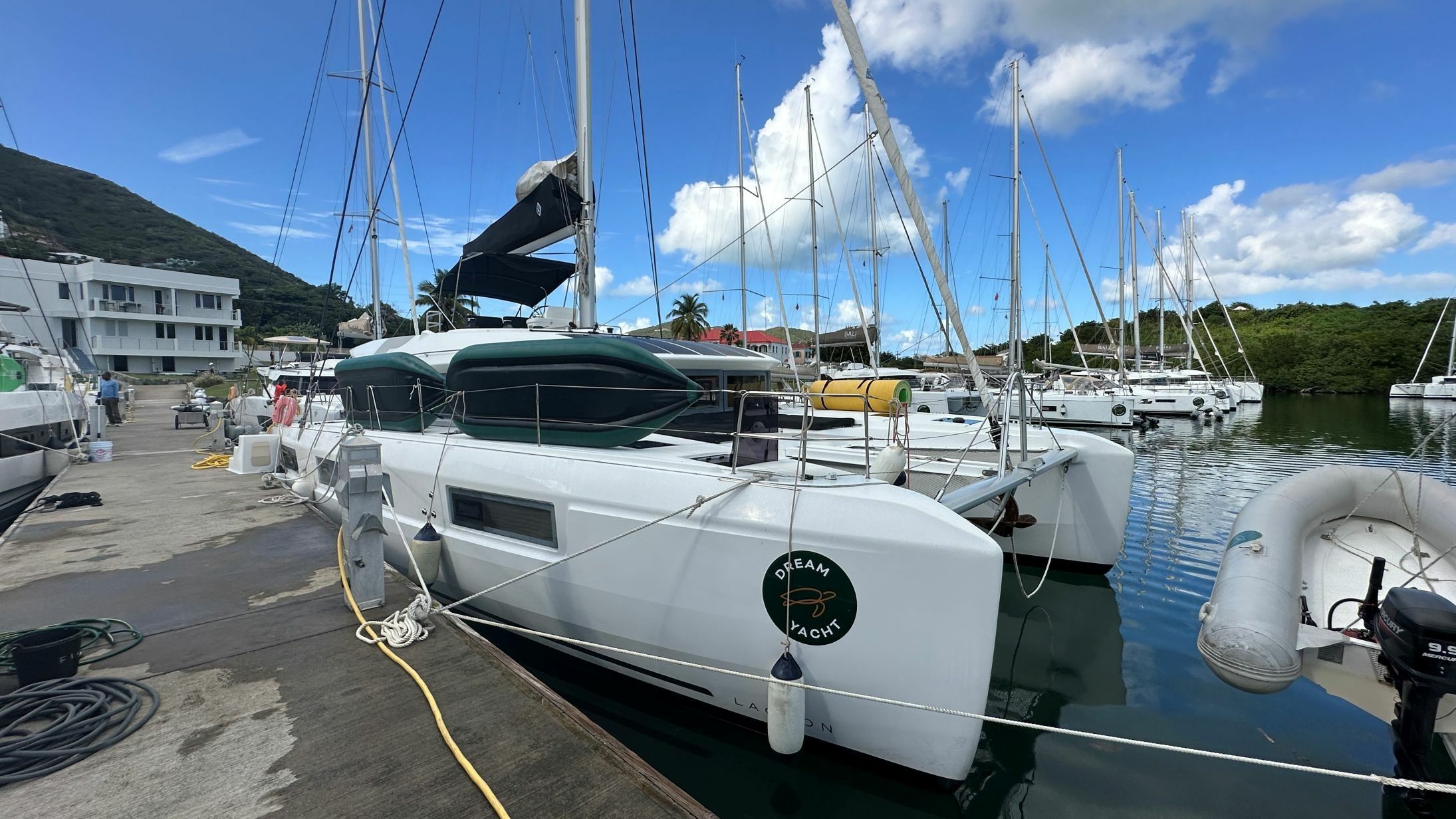 Acest catamaran Leopard 50 - Moorings 21 cu 5 cabine a fost construit în 2021 și este andocat în Wickhams Cay 2, Caraibe.
