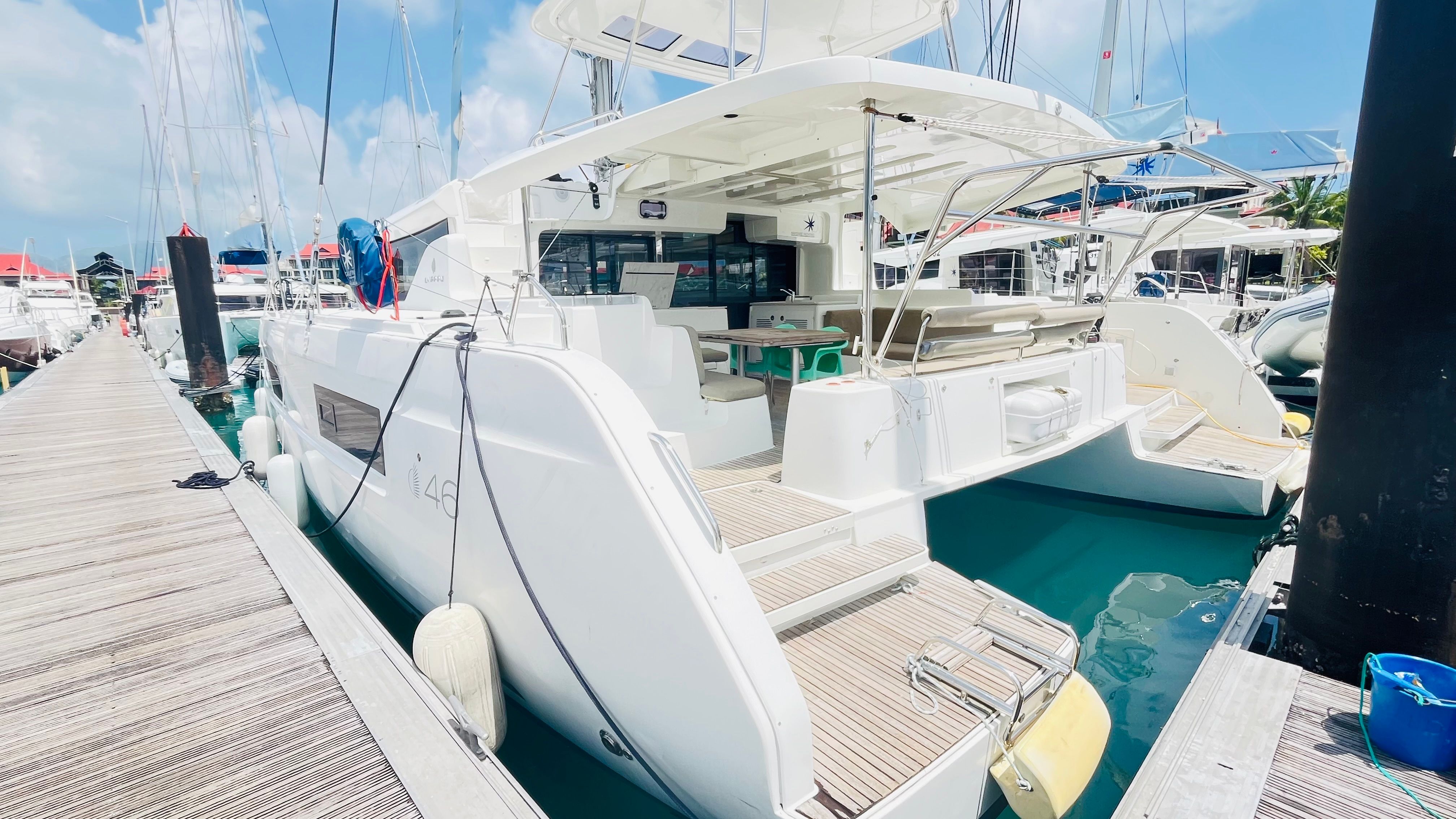 6-кабинная катамаран Lagoon 46 - Ghost Buster произведена в 2023 и находится в Марина острова Иден, Сейшельские острова.
