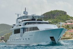 Motoryacht Azimut 116 - Tail Lights, är byggd 2011 (renoverad 2021), har 5-hytter och ligger förtöjd i Compass Point Marina, Västindien.