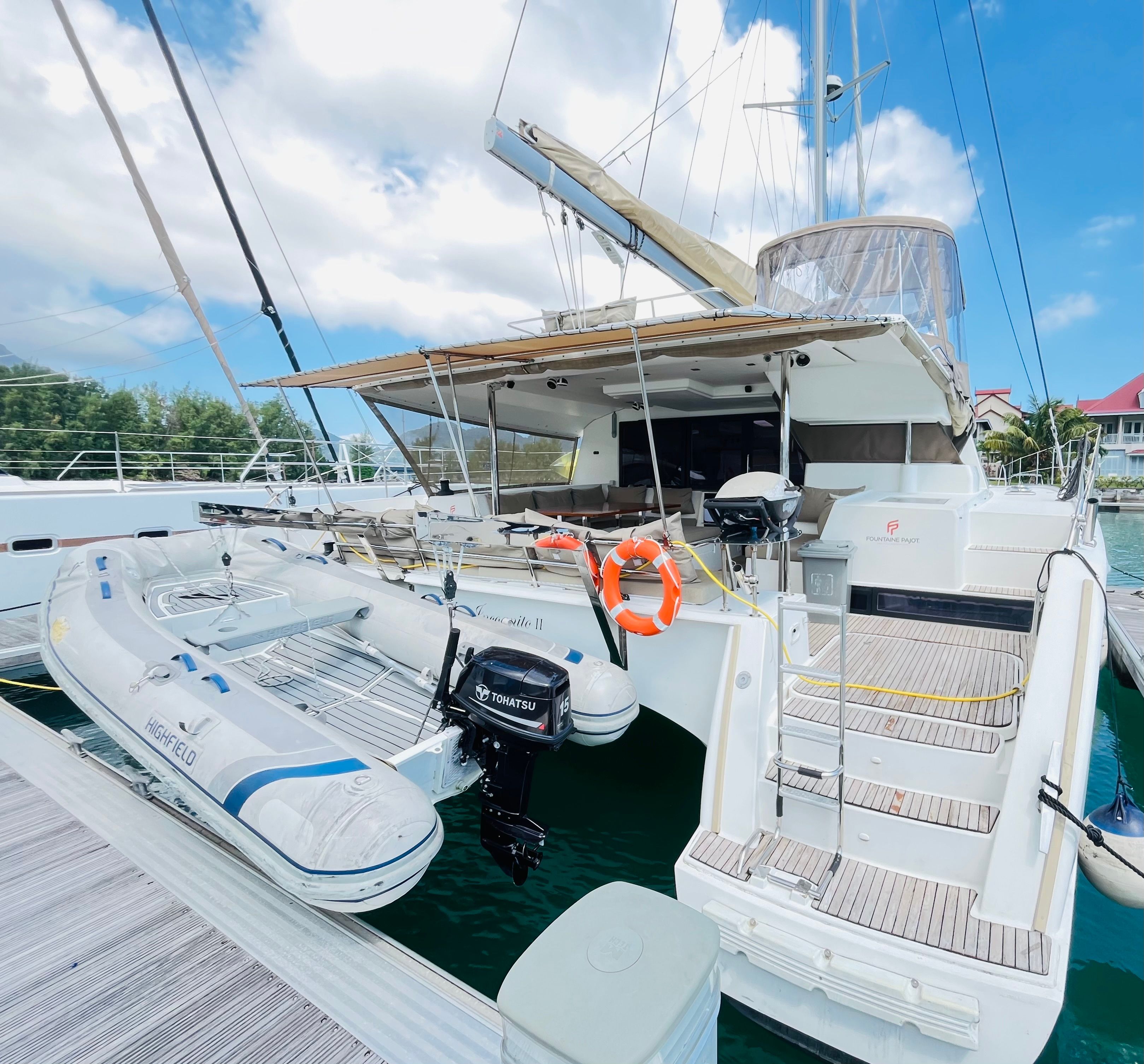 Denna katamaran drivs i Seychellerna av charterbolaget Equatorial Yacht.