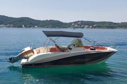 Motorbåten 2021 Barracuda 585 - DC är lämpad för 7 personer. Den ligger förtöjd i ACI Marina Rab, Kroatien.
