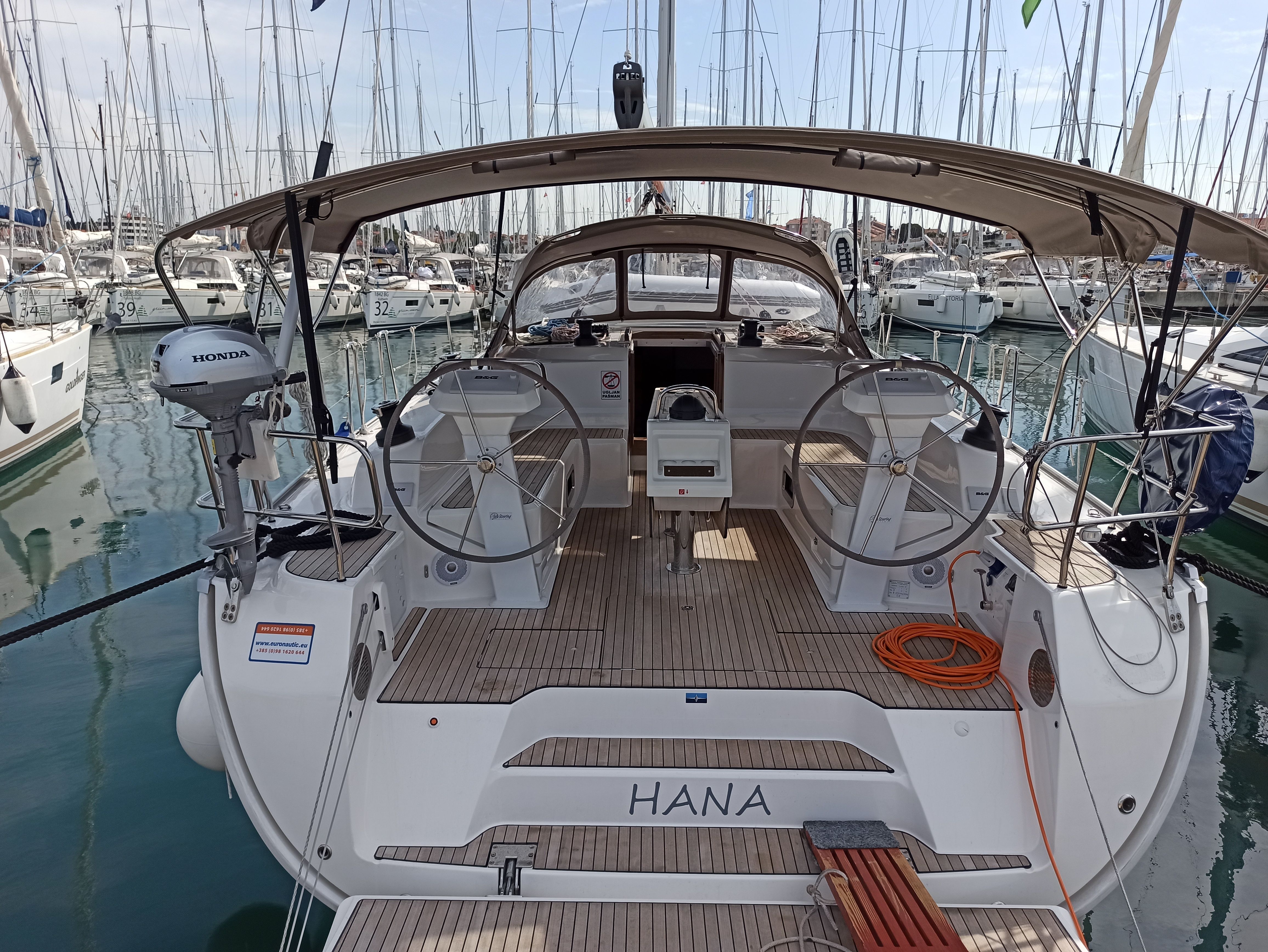 Segelbåt Bavaria Cruiser 46 - Hana, är byggd 2020, har 3-hytter och ligger förtöjd i Marina Kornati, Kroatien.